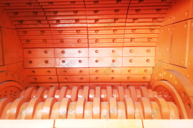 故障原因:異物、金屬等非破碎物進入設(shè)備內(nèi)部;襯板的緊固件過于松弛,異物撞擊在錘頭及襯板上,導(dǎo)致錘頭或襯板斷裂。