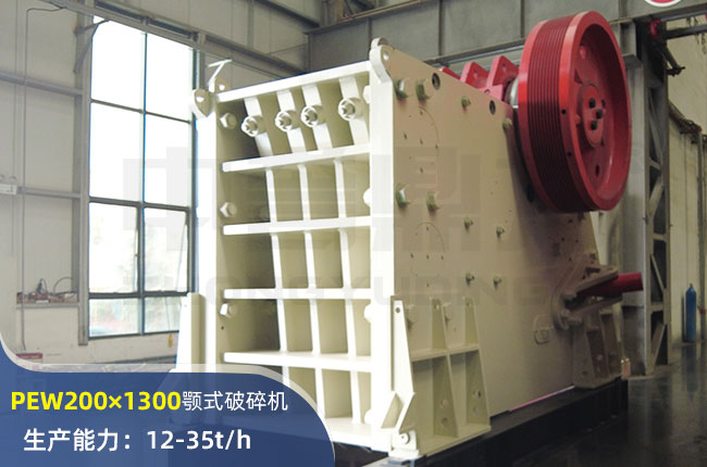 PEW200×1300顎式破碎機進料口尺寸200×1300mm,進料粒度180mm左右,出料大小10-30mm,電機功率30-37kw,時產(chǎn)量在12-35噸左右,屬于小型鄂破。