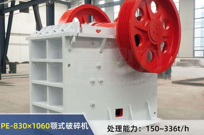 PE-830×1060鄂式破碎機(jī)進(jìn)料粒度≤650mm,出料160-220mm,時(shí)產(chǎn)量150-336噸,電機(jī)功率為110kw(8級(jí)),設(shè)備含電機(jī)重量為30.7噸。