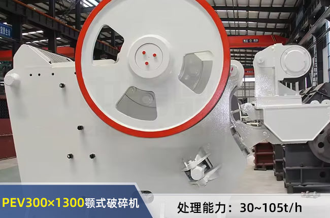 PEV300×1300顎破進料粒度要小于250mm,出20-90mm的砂石料,時產(chǎn)量30-105噸,配置55或75千瓦的電機,機器重量有11噸,外形長2150mm,寬2390mm,高1590mm。