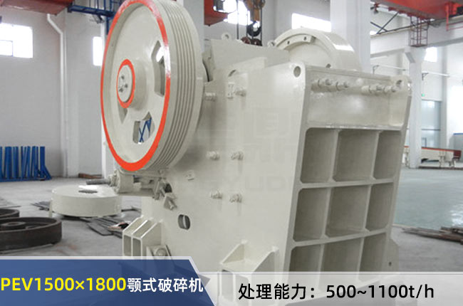 1518破碎機(jī)指PEV1500×1800顎式破碎機(jī),屬于PEV鄂破中較大的一個型號,設(shè)計的進(jìn)料口能進(jìn)不大于1250mm的物料,破碎后的石料大小在210-360mm之間可調(diào)整,每小時處理能力在500-1100噸,配的電機(jī)功率是280千瓦,其外形尺寸(長x寬x高)7460x6240x4250mm,重量約122噸。
